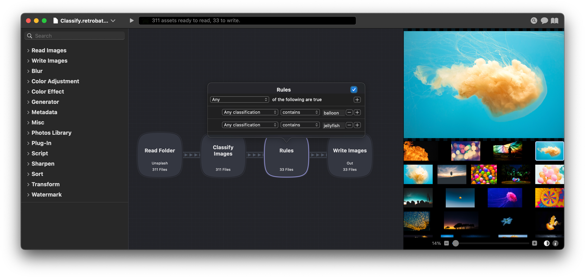 Note: The Classification and Rules nodes are available in the Pro version of Retrobatch.