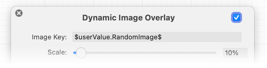 The Dynamic Image Overlay node operates similarly to the Image Watermark node but with the key distinction that the image used is not static. Instead, the image source is dynamically determined via the Image Key field in its properties inspector.